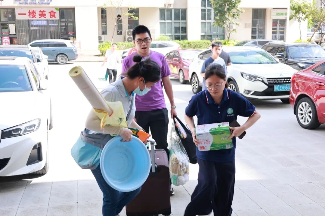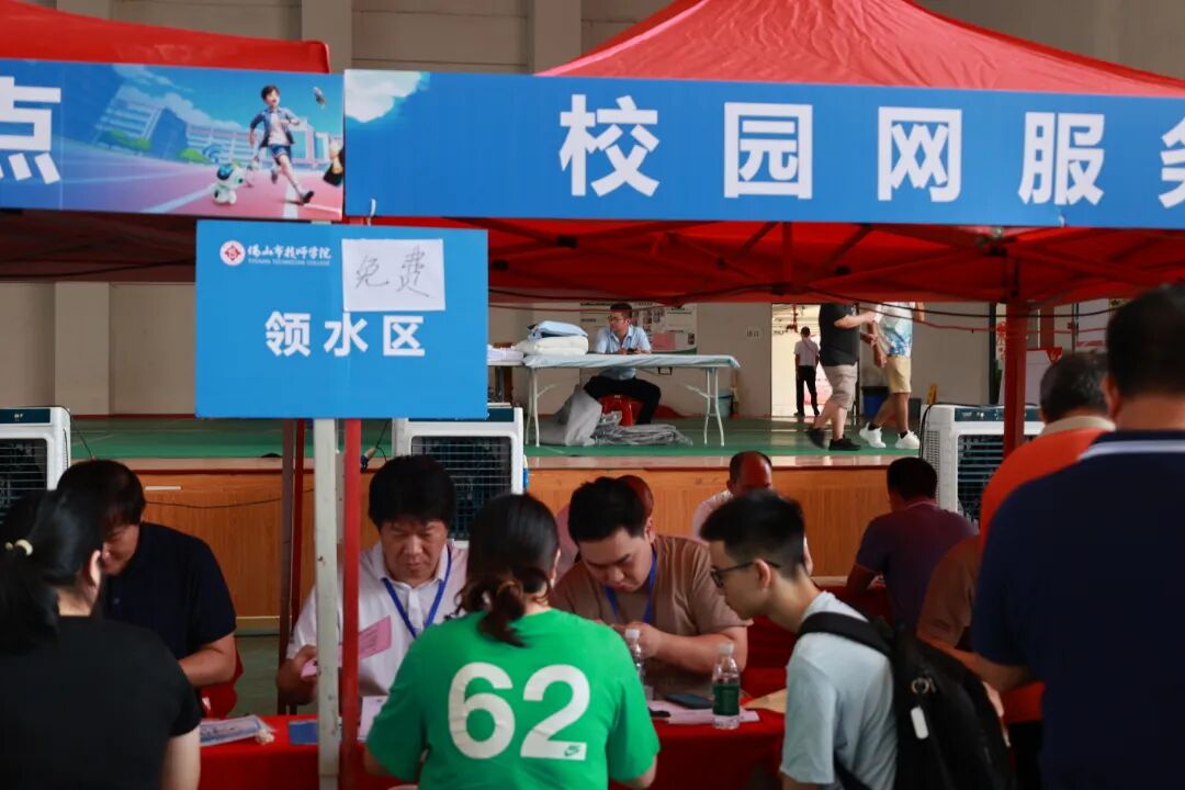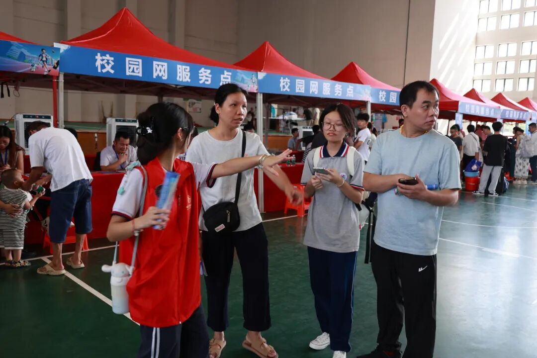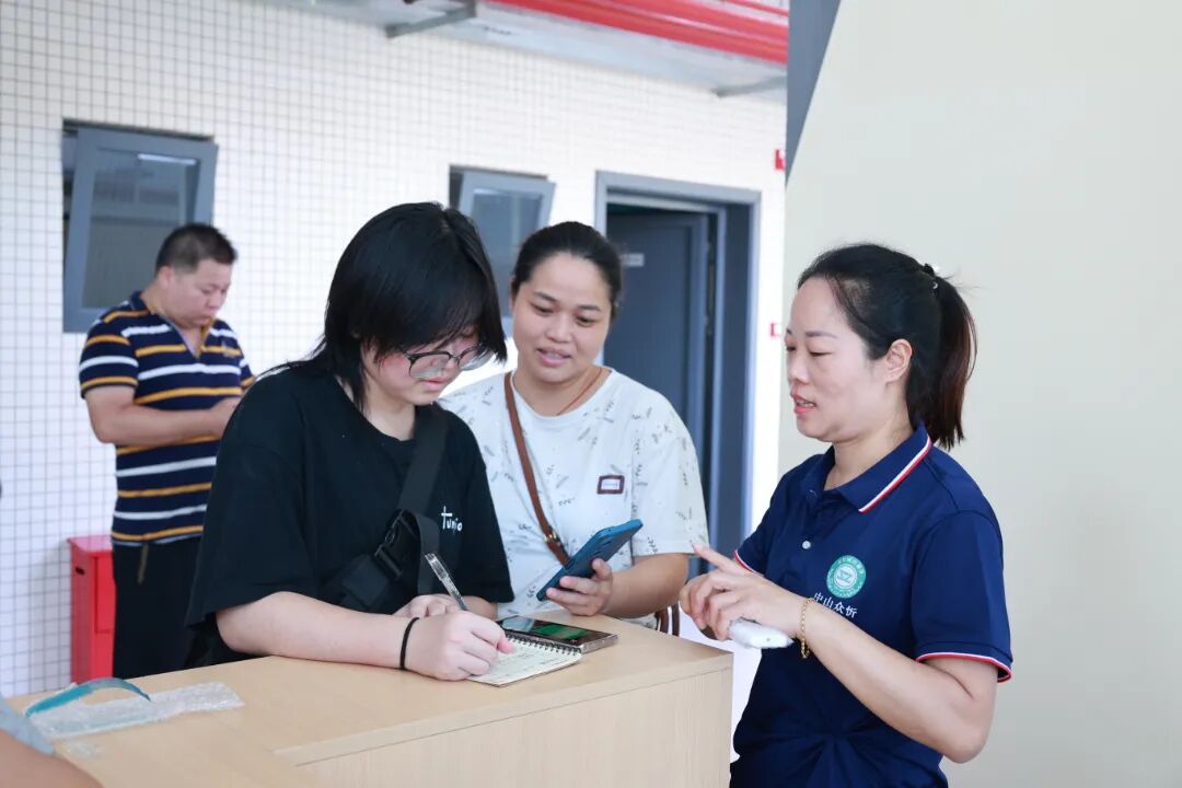 后勤保障部门全方位护航迎新:校园里的交通引导员烈日下坚守岗位指引车辆有序停放;饭堂准备好美味的家常炒菜、解暑饮品待新生享用;宿管在宿舍楼下热情迎接新生并指引入住;报到区里空调、冷风机双管齐下为师生家长解暑,并配备休息区、饮用水等。后勤团队以有温度的行动,让新生与家长倍感安心,真切感受 “校园如家”。