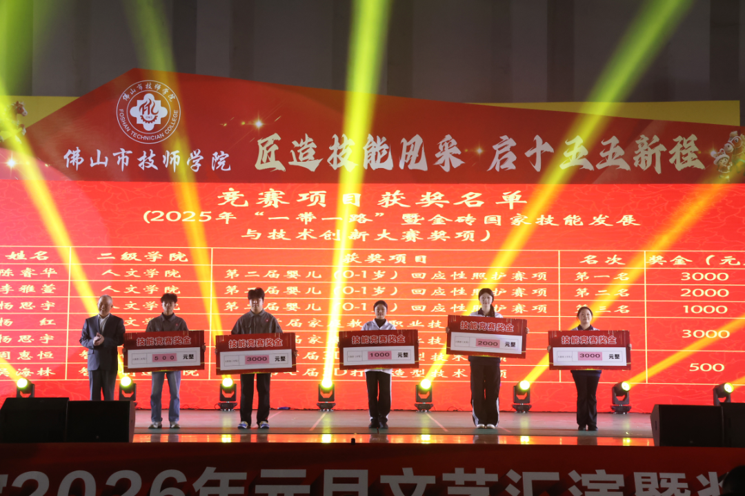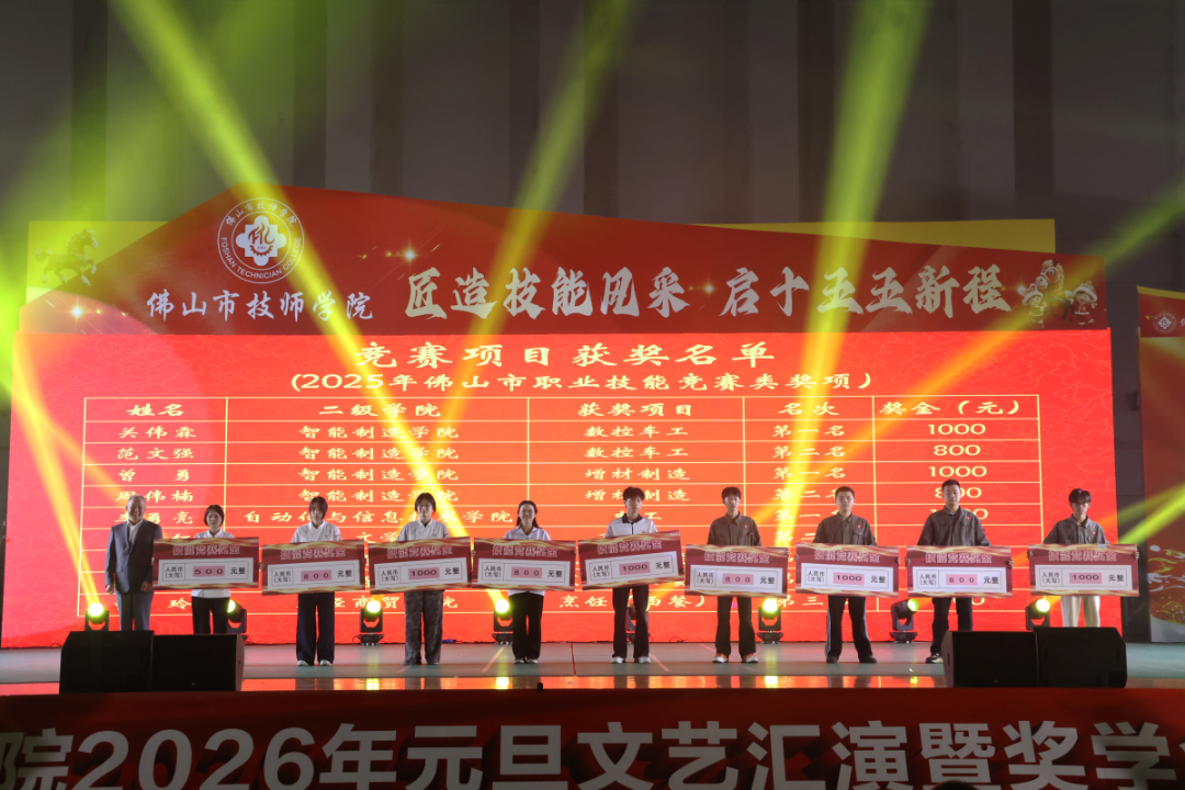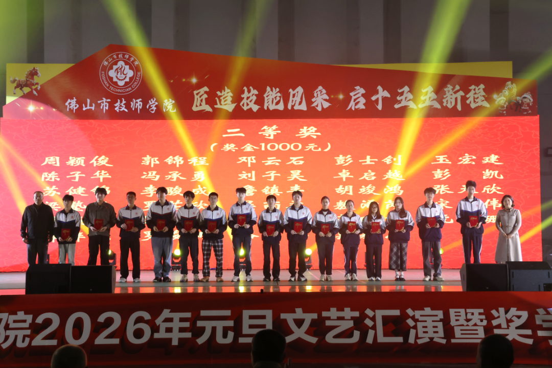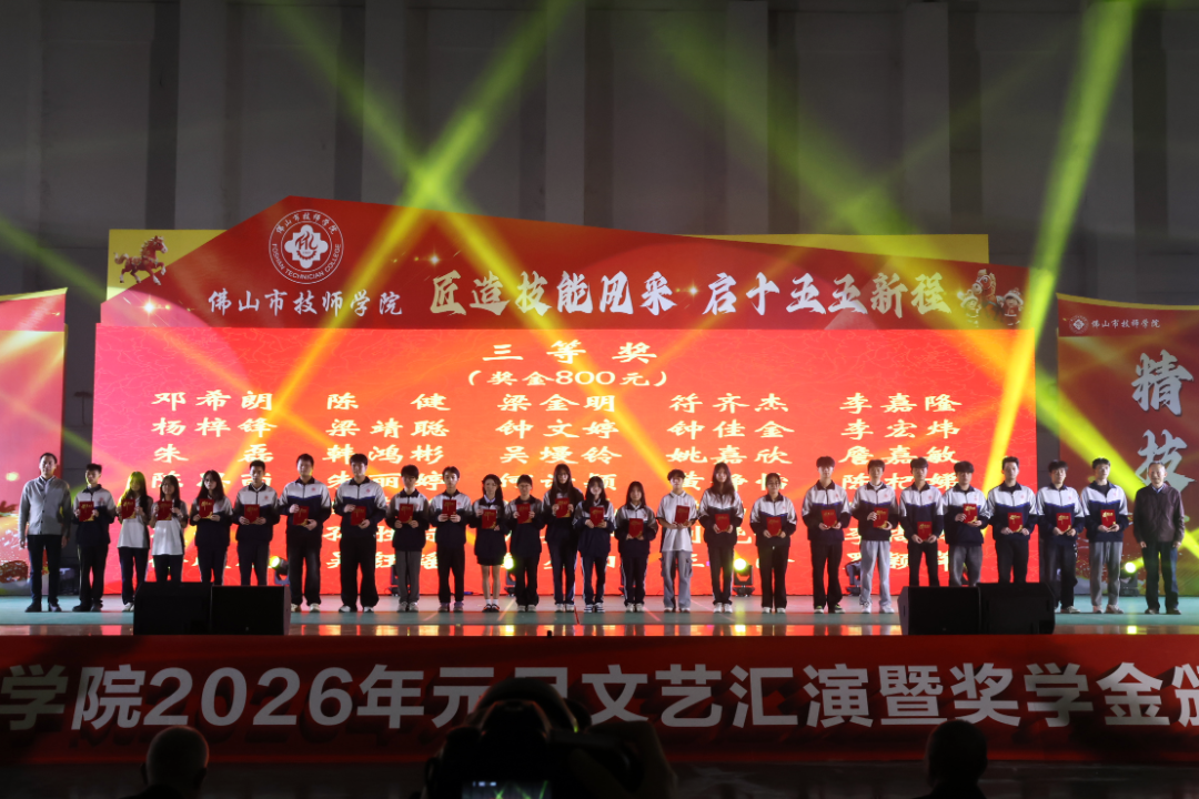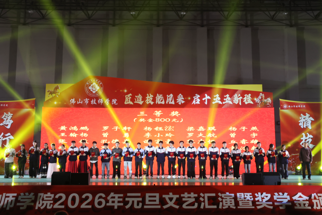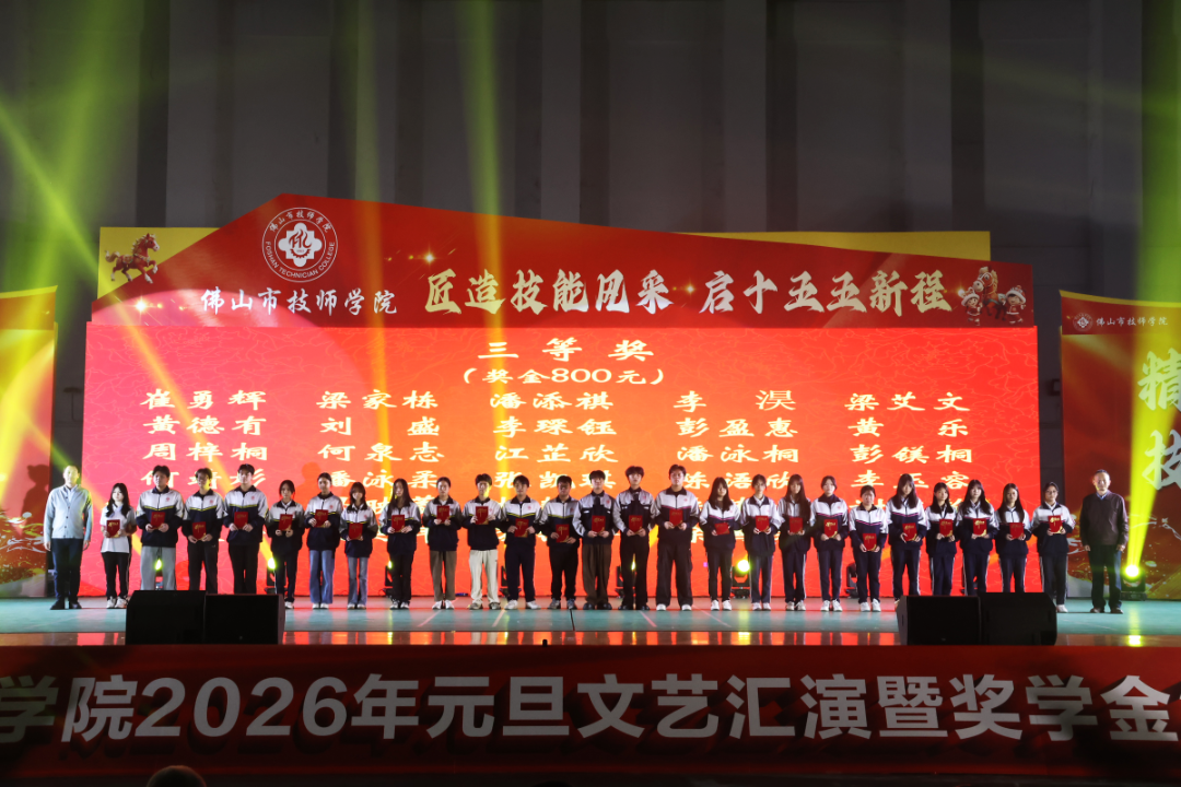 此次元旦文艺汇演暨奖学金颁奖典礼的圆满举办,不仅为师生们提供了展示自我的舞台,更是对学校2025年办学成果的集中展现。展望2026年,作为“十五五”规划的开局之年,学校将继续坚守“为党育人、为国育才”的初心使命,深化教育教学改革,推进产教融合,全力培养更多德技并修的高素质技能人才,为“再造一个新佛山”、助力技能强国建设贡献更大力量。