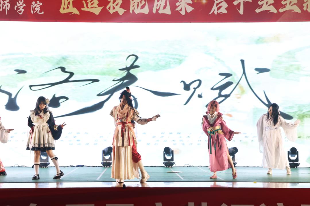 人文学院带来的舞蹈《民族大团结》《簪花送嫁》,用优美的舞姿诠释了传统文化的魅力与民族情谊;智能制造学院的传统舞蹈《中国龙》气势恢宏,展现出新时代青年的昂扬斗志;财经商贸学院的钢伴演唱《起风了》、歌伴舞《小幸运》旋律悠扬,引发全场共鸣;艺术与设计学院风铃动漫社的《墨色漫舞・艺彩流光》将创意与美感完美融合,让人眼前一亮;吉他社团的《我不难过》以细腻的弹唱传递真挚情感;交通运输学院的礼仪操《礼行致美》展现了学子们规范得体、阳光自信的精神风貌;街舞社团的《应运而生》节奏明快、活力四射,尽显青春张扬。