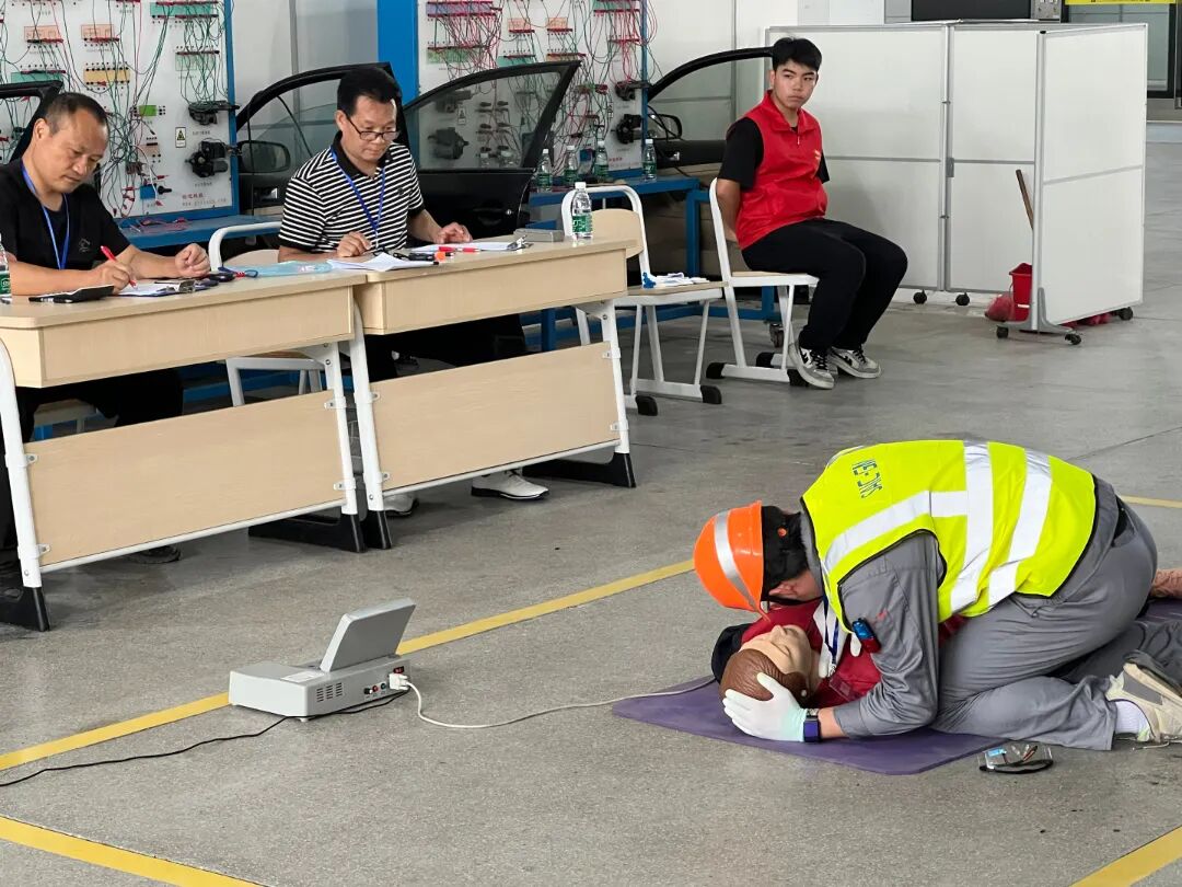 来自各汽车救援实体单位、高职院校等21支职工组队伍、6支学生组队伍进行了使用新能源(电动)汽车故障救援-模式功能转换、综合体能-平衡负重测试、单人徒手成人心肺复苏(无脊柱伤)、安全防护隔离区设置、解除等赛项角逐。参赛选手用专业高超的救援技术全面展现了新兴职业“汽车救援员”的专业风采和精神面貌。值得一提的是,此次选拔赛是汽车救援员职业发布以来的首次国家二类职业技能竞赛赛项的选拔赛,既是对近两年汽车救援人才培养成果的检验,也是技能人才脱颖而出的大好机遇。作为本次广东省分赛区的承办单位,我校未来将继续在汽车救援领域深耕,探索培育专业化汽车救援员团队,培育争做新时代知识型、技能型劳动者,培养更多大国工匠。
