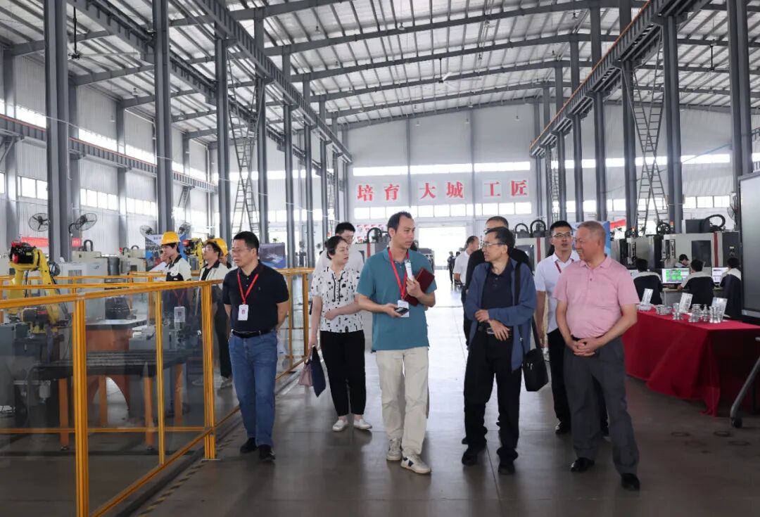 在学校党委书记、校长甘汉忠及相关部门负责人的陪同下,丁向阳副社长一行参观了学校实训工厂、技师工作站/大城工匠室,实地调研了学校制造产业高技能人才培养模式,深入了解学校专业教学、校企合作、就业创业等人才培养工作细节,对学校重视学生思政教育、职业素养培育的做法与成效给予充分肯定。