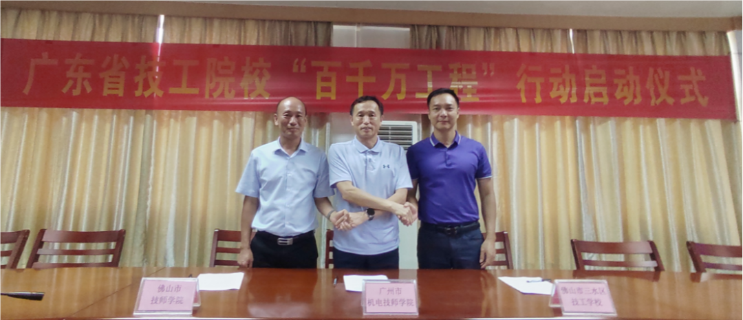 为深入贯彻落实广东省技工院校协作助力“百千万工程”行动方案和广佛两市关于对口帮扶、协作共建有关精神,充分发挥技工院校技能人才培养主阵地作用,推动县级技工教育提质增效,7月25日,广州市机电技师学院、佛山市技师学院、佛山市三水区技工学校协作结对协议签订仪式在佛山市三水区技工学校举行。