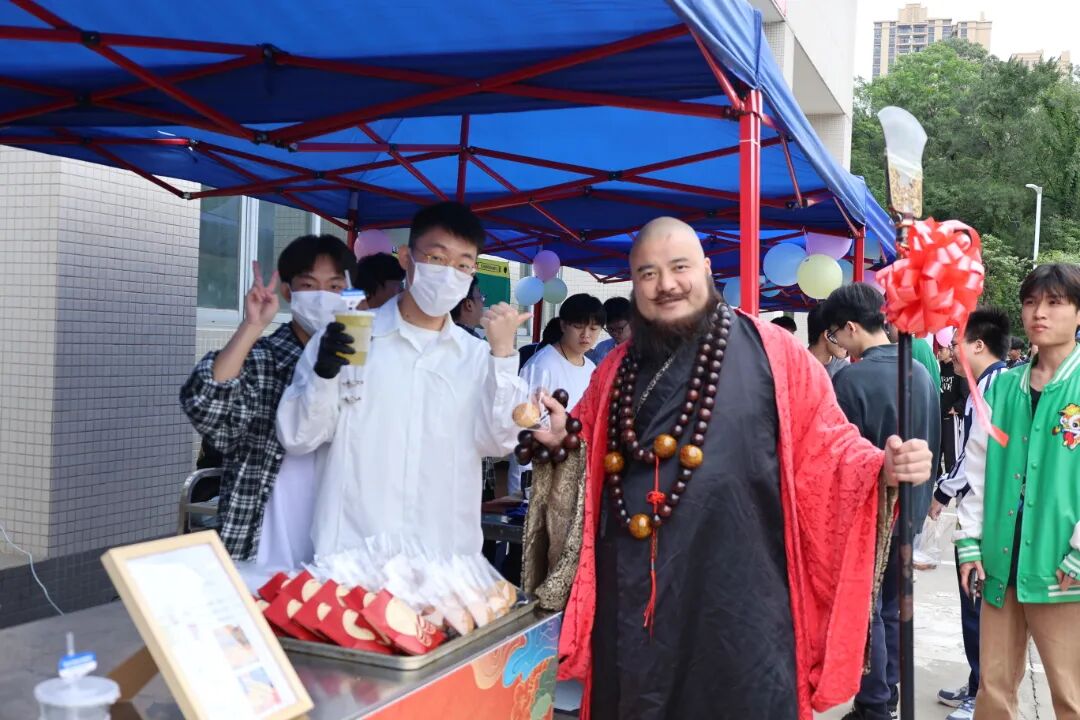 特型演员水浒传鲁智深扮演者(中建商界餐饮精英协会主席梁宇宙)给同学们现场带货啦~