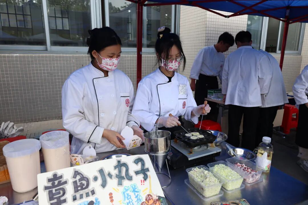 活动现场分为美食品鉴区和快乐游戏互动区,采用模拟创业与文化互动的形式,将创新创业、文化交流、展示表演、美食体验等多元素结合起来,全方位弘扬粤菜饮食文化。在美食品鉴区,财经商贸学院烹饪教研室组织烹饪专业的学生成立了12个模拟创业团队,各团队以自己所学和特长制作特色美食产品进行现场品鉴售卖。