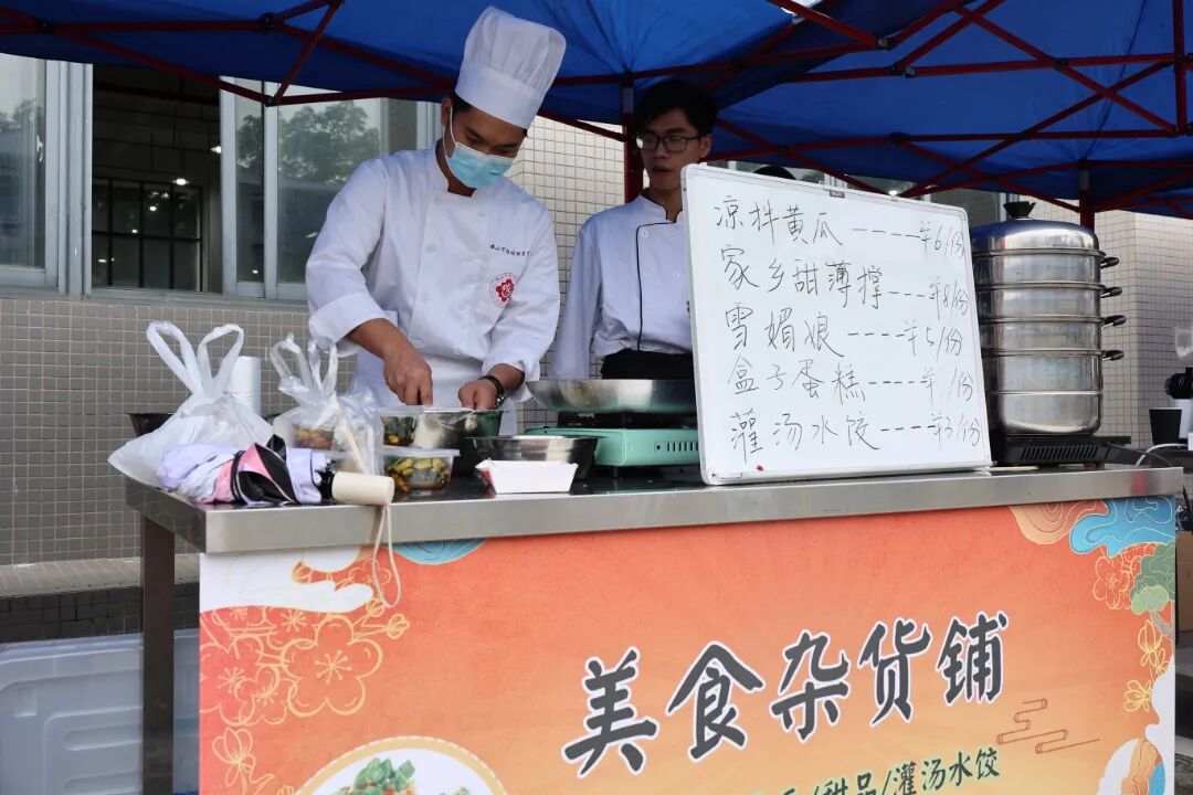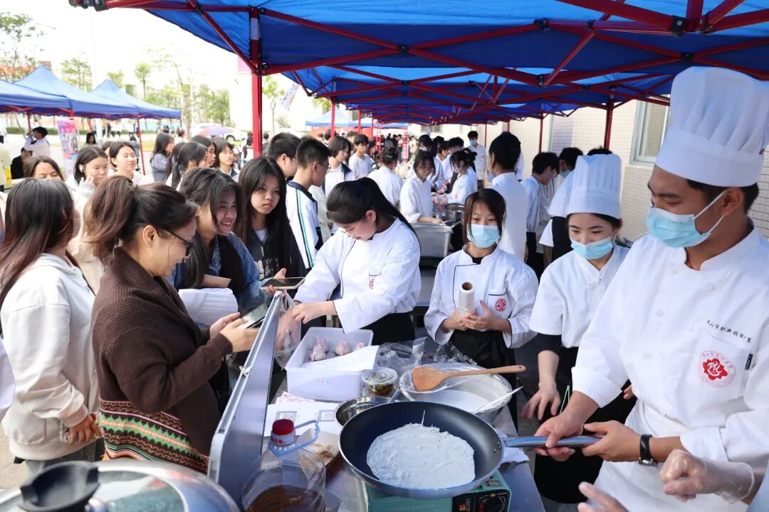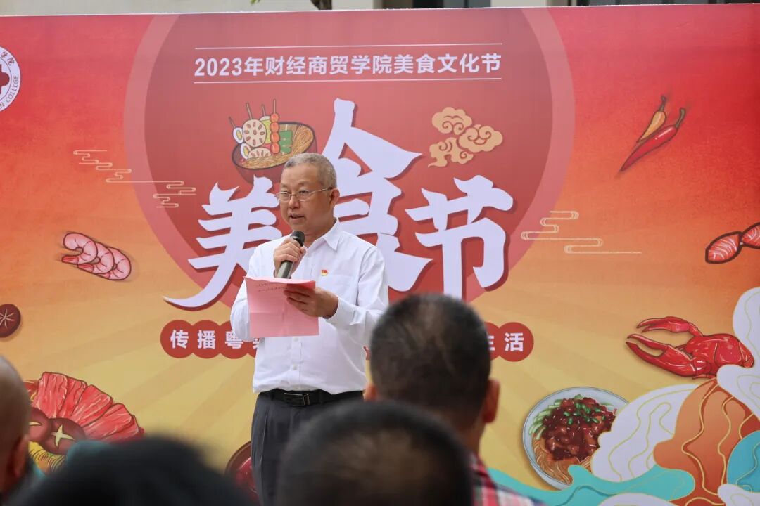 本次活动是我校建校以来首次举办的美食文化节,由学校财经商贸学院承办、艺术与设计学院协办;乜(miē)太靓汤全国连锁、易韵德餐饮、海昌沅国通食材、巨鳄文化传播、亿王餐饮、鲜湘辣餐饮、均健冷冻食品、青鑫餐饮等友好企业为美食文化节在活动组织、物资供应等各方面提供了巨大的支持;广东广播电视台为美食文化节进行宣传报道,提供媒体支持;还有中央广播电视总台广州(粤港澳大湾区)办事处姜文军总监、中建商界餐饮精英协会的梁宇宙主席、顺德勒流黄连美食协会的洪淑霞副会长、两广名厨协会的刘汉明副会长、中国烹饪协会素食委员兼广东素研会的杨英东秘书长等企业家亲临现场。