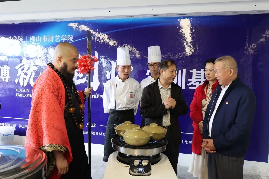 学校领导及企业嘉宾为粤菜师傅就业创业实训基地揭牌。