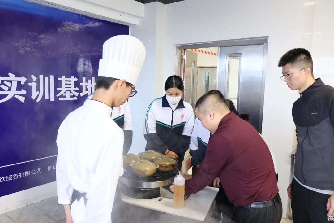 本次活动还邀请了企业的烹饪专家为学校烹饪专业的学生开展了培训,通过理论讲解和现场实操相结合的方式,就原料初加工、调味、刀工、烹制等技术方面进行培训,帮助学生学习掌握“粤菜”的传统制作技巧,并指导学生开展现场实训,更好地提高学生的专业素养和实操能力。参加活动的领导、企业家驻足品鉴本次实训的成果,对色香味俱全的作品赞叹不已。参加活动的企业负责人表示,粤菜师傅就业创业实训基地是实施“粤菜师傅”工程的重要载体和阵地,通过这个平台,校企双方围绕学校和企业的总体发展规划,在国家宏观产业政策和区域发展政策引导下,借助企业经营项目、生产资金、设施设备、企业管理,技术人才和产品市场等资源,发挥学校在实训场室、人才培育、专业学科建设和人力资源等优势,在共同培育高质量技能人才、共建产教融合创新中心、推进高层次人才交流、实施产教融合战略等方面开展深层次合作,实现共赢发展。