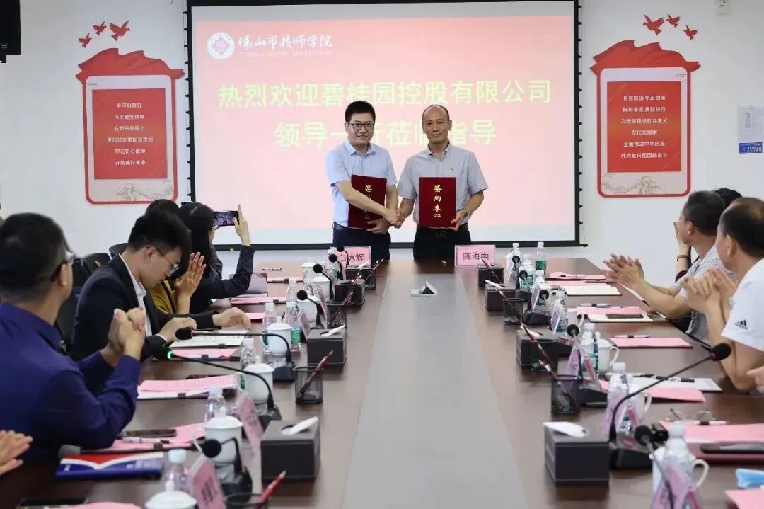 签约仪式中,市人社局三级调研员张有志、学校党委副书记甘汉忠同志分别致辞,对碧桂园集团领导一行光临学校参观考察、洽谈合作表示热烈的欢迎,对碧桂园集团在社会经济、民生保障等方面作岀的突岀贡献表达了敬意,希望政校企深度合作,共同为佛山经济高质量发展做出应有的贡献。