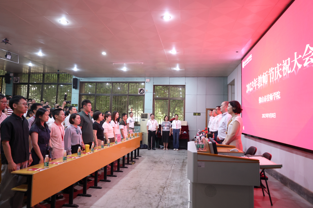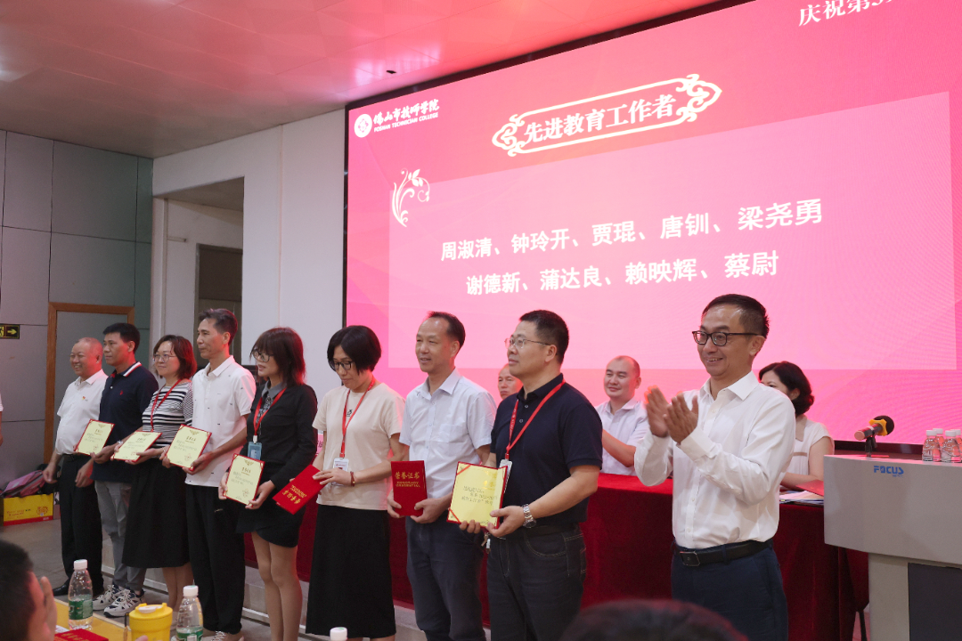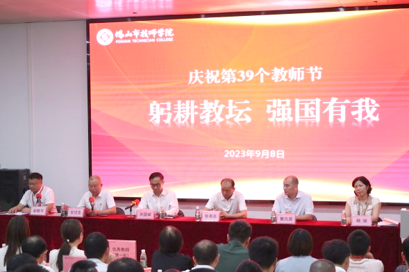 市人社局刘国斌副局长代表市人社局向全体教师致以最诚挚的问候和最美好的祝福。他指出,佛山市技师学院办学60年来的每一个重要节点,都深深镌刻着每一位老师爱生、爱教、爱校的不朽印记。从创建之初,到当今新时代,几代前辈学长、师生员工顺应时势大潮,踔厉奋发、笃行不怠,助力学校事业突飞猛进,办学声誉和社会影响力大幅提升,成为佛山经济社会高质量发展不可或缺的重要力量。