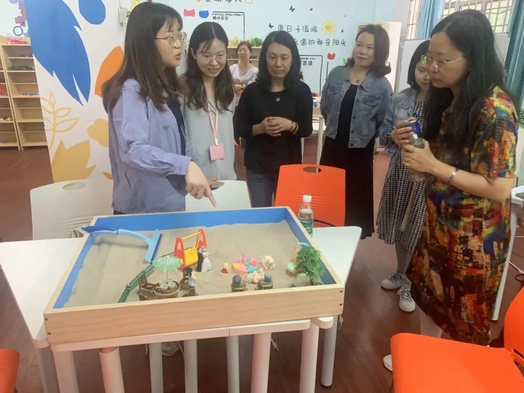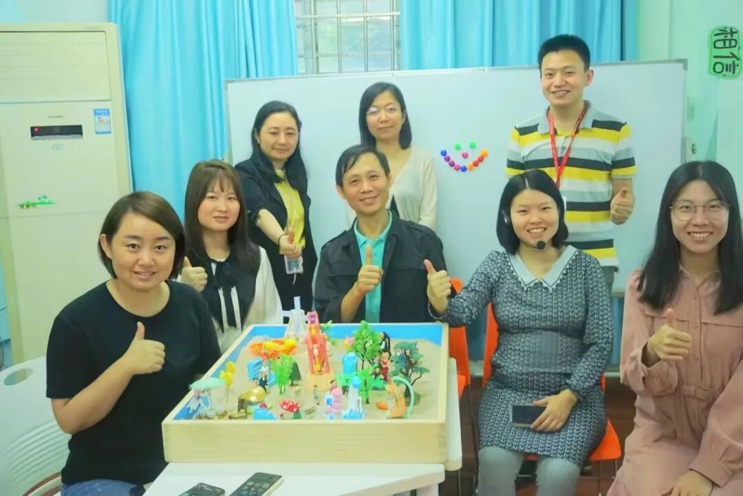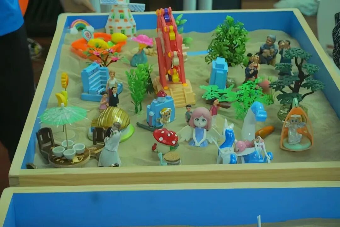 在大家的真诚分享下,每个人与沙具的联结进一步加深,意识与潜意识之间在演绎着不一样的故事。教职工们用沙具作语言,用沙盘作纸张,尽情释放着自己内心最真实的一面。渐渐地,一幅美好的沙画世界呈现在大家眼前。这幅沙画世界是小组成员共同创作的作品,对每个成员来说都有独特的意义。