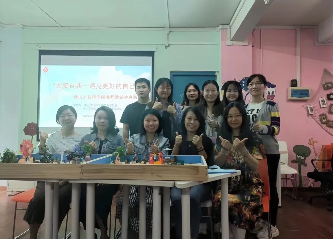 5月10日—11日下午,由我校工会委员会及学生工作处阳光天地心理咨询室联合开展的“关爱自我——遇见更好的自己”教职工团辅沙盘游戏在阳光天地心理活动室举行。活动现场,大家围在沙箱旁,在自由、愉悦的氛围中安静地按顺序选取沙具,反复斟酌,小心地在沙盘中摆放触动自己内心的沙具。心理咨询室的赵林林老师详细介绍了沙盘的组成、团体沙盘游戏的基本操作与游戏规则,并引导大家将双手置于沙盘内感受沙砾的触感,在一推一松、一呼一吸之间,沙子细微的触感,缓解了教职工们紧张的情绪。在赵老师的指引下,教职工们分别对自己所选的沙具和动作进行了感受分享,“我喜欢这个摩天轮,它代表着娱乐享受,我假期想带我的孩子去游乐场玩耍”“这个椰子树代表海边,我喜欢大海”......每一个选择,每一次摆放,都是一种内心表达,都以微妙的方式触动着大家的内心。