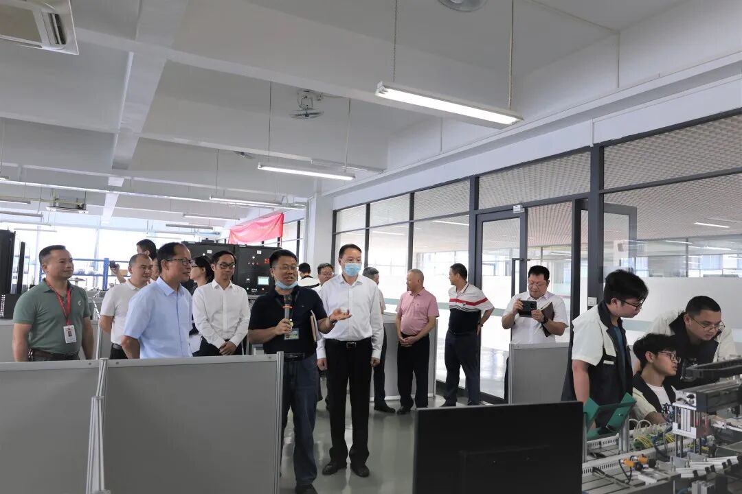 梅式苗副主任一行参观了学校交通运输学院实训室、西门子先进自动化联合示范实训中心、智能制造学院实训工厂、技师工作站/大城工匠室以及厨艺学院等教学实训场室,详细了解了学校管理制度、教学管理制度、技能人才培养模式、办学成果等方面的情况,对学校特色鲜明、成果丰硕、积极创办高水平技师学院等给予了高度评价。